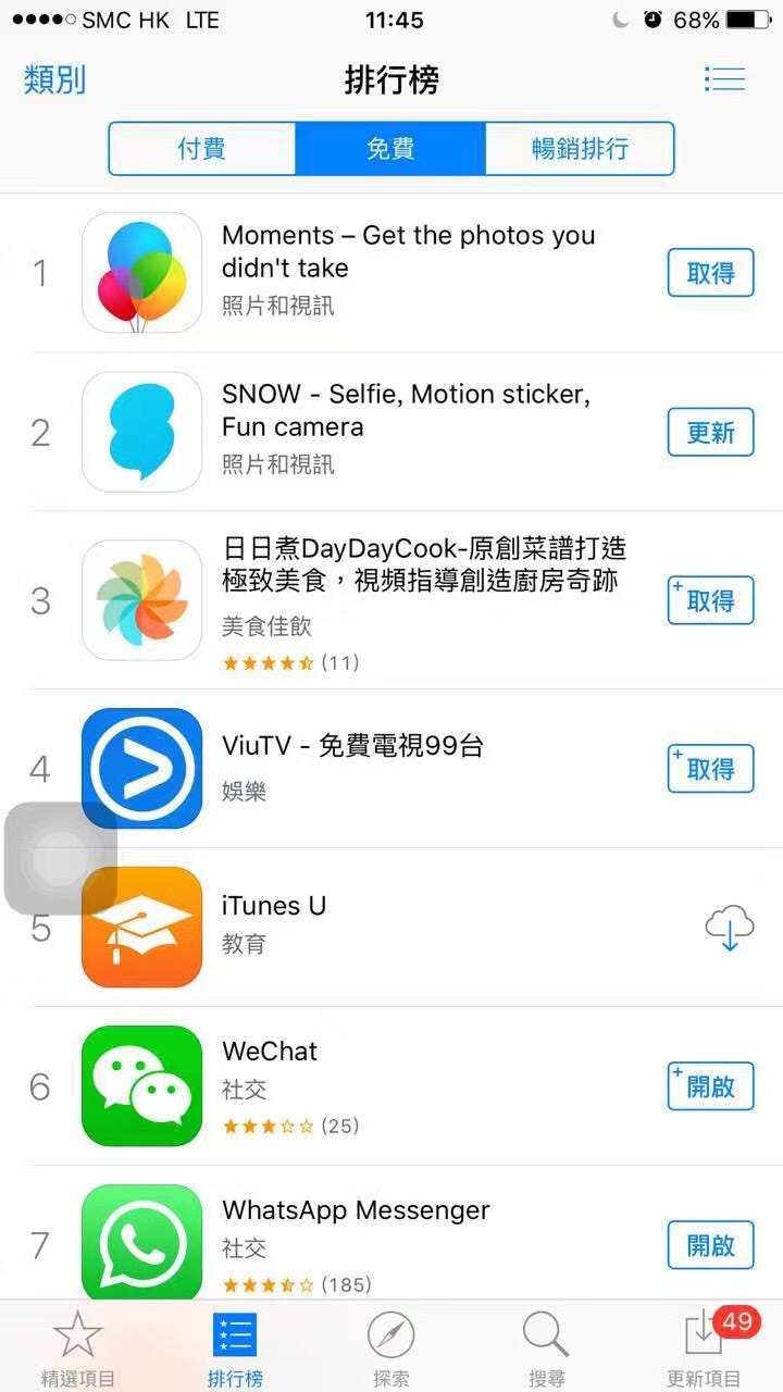 Starting in May, another iOS developer colleague and I began work on a complete redesign of the iOS app in preparation for a global relaunch. We soon added a third iOS developer and worked day and night through May and June to prepare the new iPhone, iPad, Apple Watch, and Apple TV apps for a global launch in three different languages (Simplified Chinese, Traditional Chinese, and English). Once we finally finished development and testing and submitted the app, we were rewarded with a week on the front page of the App Store in mainland China, Hong Kong, and Taiwan. In Hong Kong, our app rose to the #3 spot on the Free Download ranks.